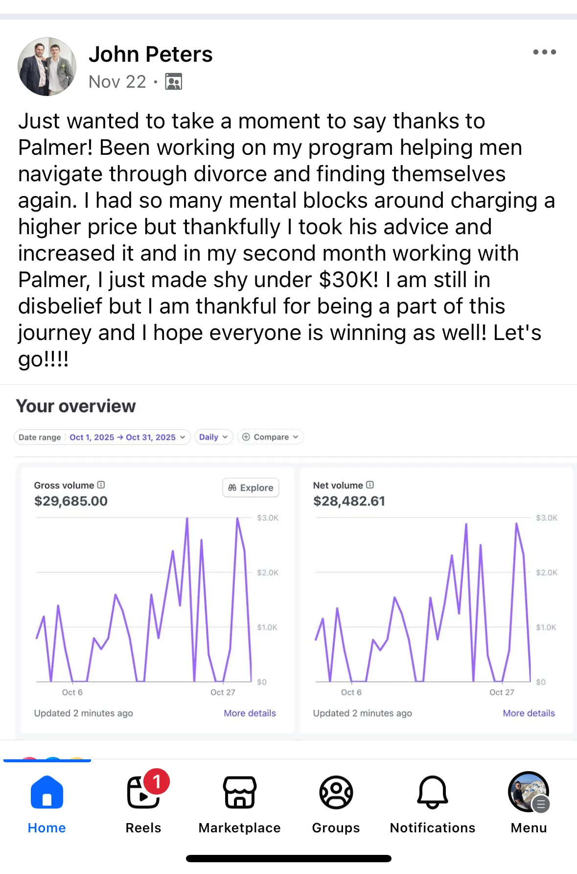 One‑on‑one support is available, depending on the path you choose. Since every entrepreneur is at a different stage, there are options to fit your needs. If you decide to work directly with Palmer, you’ll have access to his personal WhatsApp number for support on specific issues, plus the ability to book time on his calendar whenever you need deeper clarification.